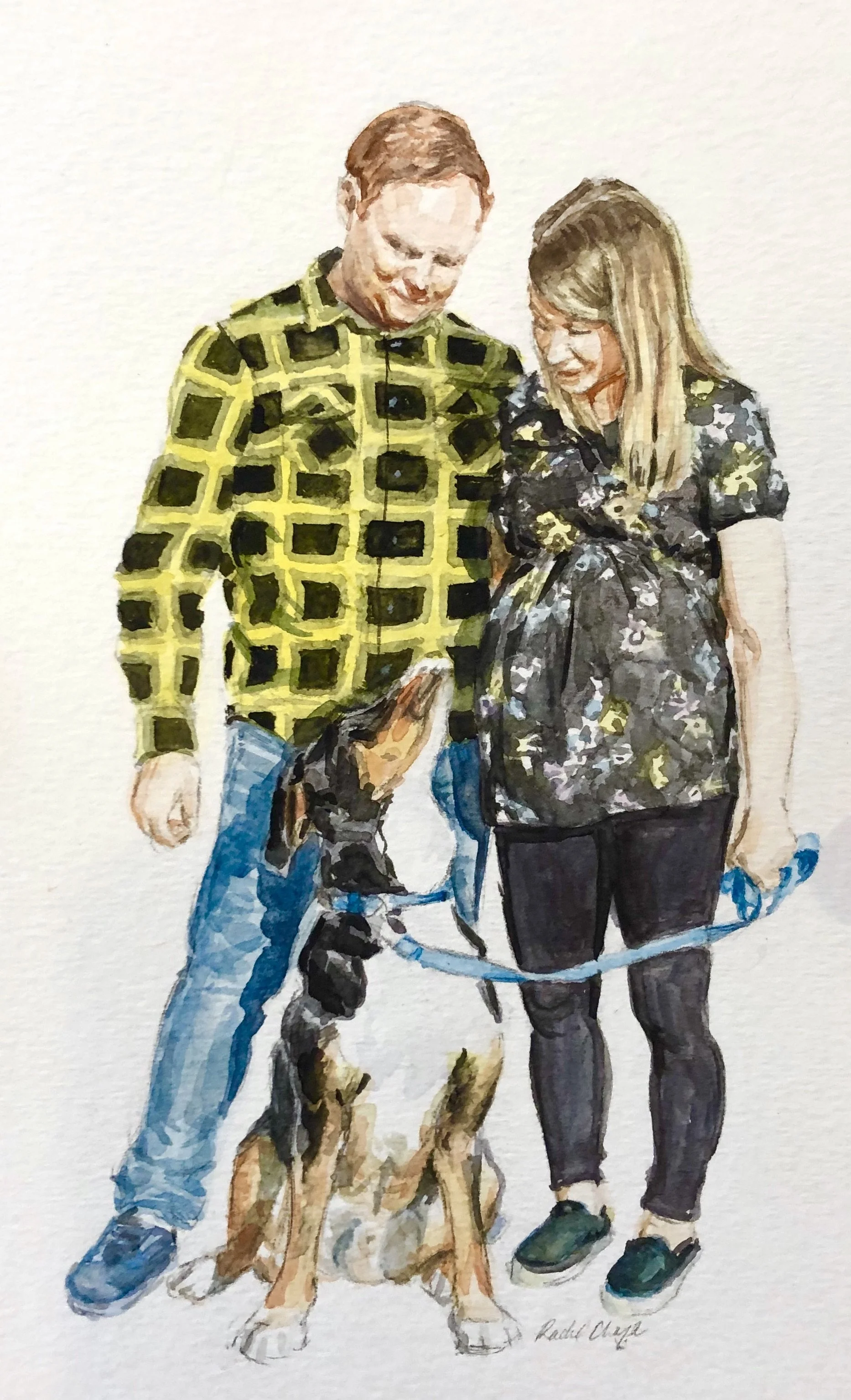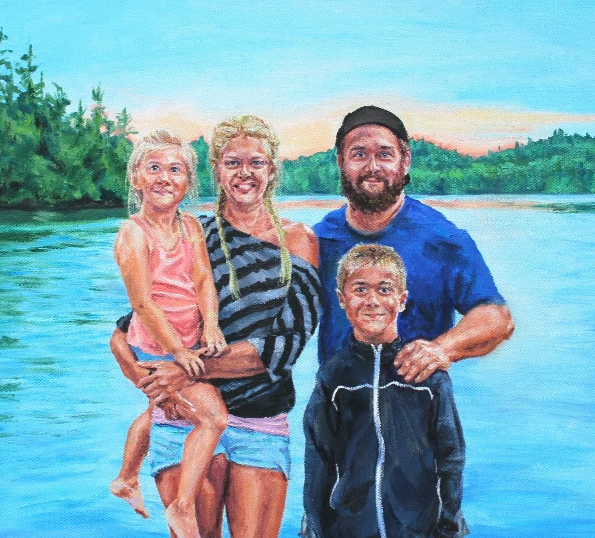 The majority of my paintings are oil paintings, for landscapes and medium to larger pieces that would be the medium you choose. For smaller to medium sized portraits I recommend watercolour. I often leave the background white to give more focus to the subject. One thing to keep in mind is watercolours are done on paper and will need to be put in a frame where as my oil paintings are done on canvas and can be hung without a frame.